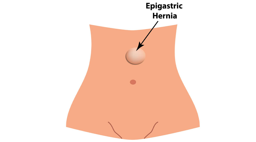 An epigastric hernia is a type of abdominal hernia that occurs when fat or tissue pushes through